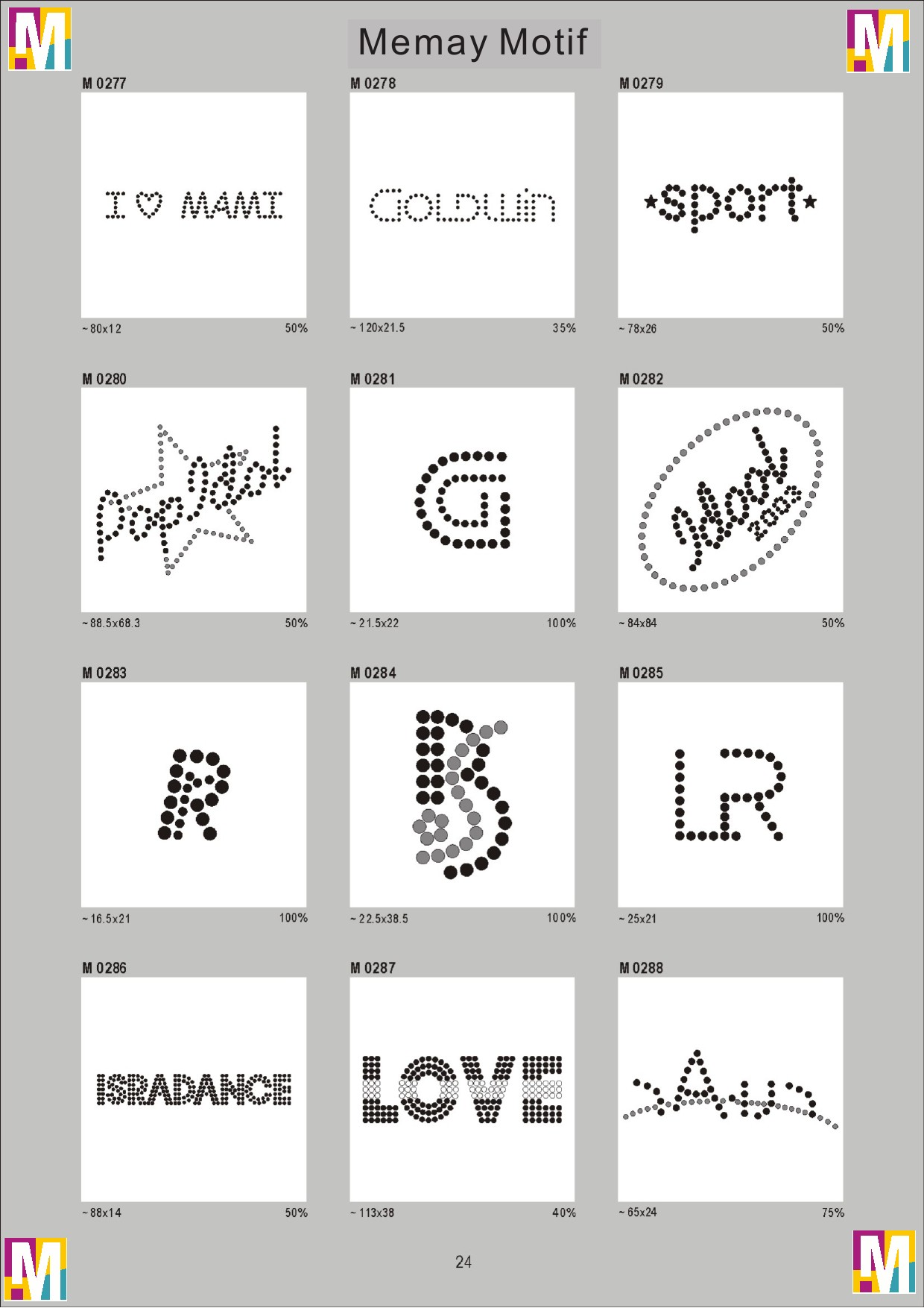 花型烫钻烫图设计画廊 Pattern Rhinestone Designs 发布于29 8 月, 202429 8 月, 2024 作者:admin 丰富的花型烫钻设计,给您很多参考 加载较慢,请耐心等待一会